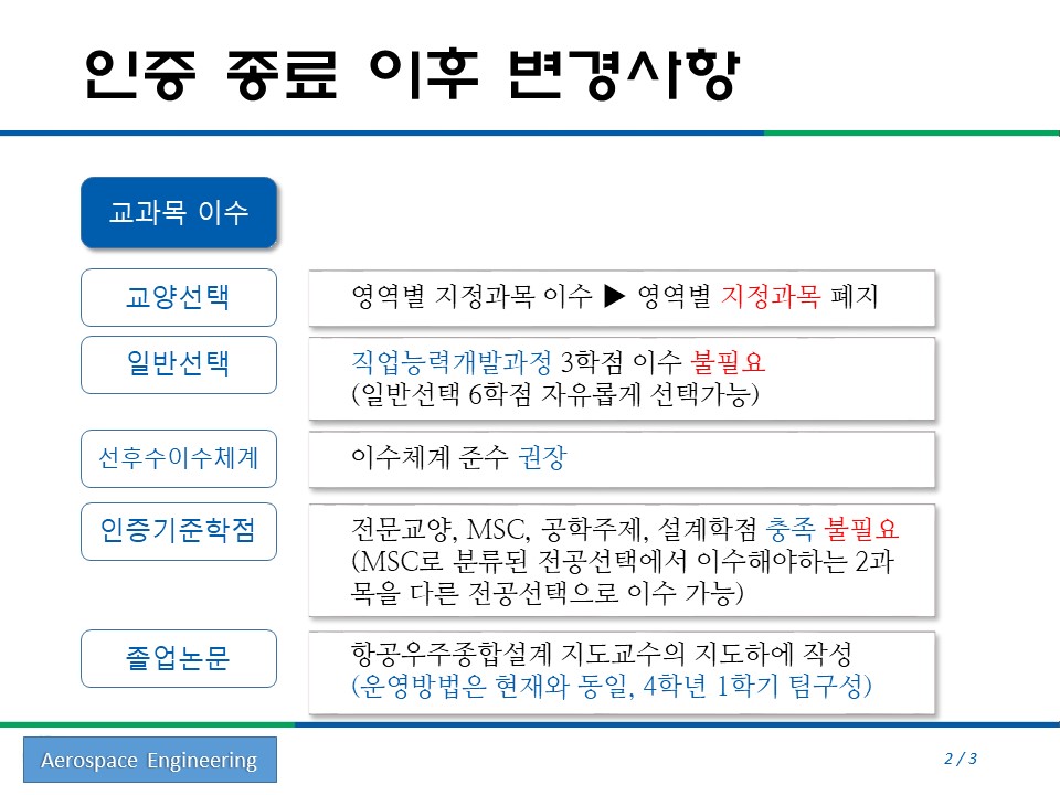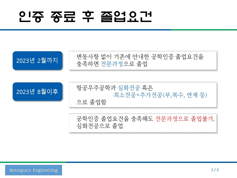 공학교육인증 종료에 따른 항공우주공학과 안내사항